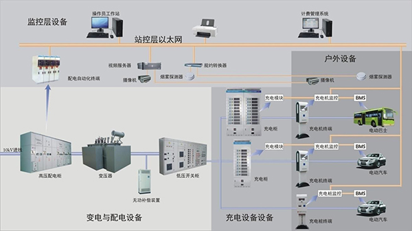 充電樁系統(tǒng)是由變電與配電設(shè)備系統(tǒng),充電設(shè)備系統(tǒng),戶外設(shè)備系統(tǒng),監(jiān)控層設(shè)備系統(tǒng)5大系統(tǒng)構(gòu)成。電網(wǎng)傳輸過來的高壓電壓通過高壓配電和變壓器降壓為低壓電壓,經(jīng)過低壓開關(guān)傳輸?shù)匠潆姌叮儆沙潆姽駥㈦娏髡?,濾波,放大,讓電壓和電流達(dá)到了要求值。
