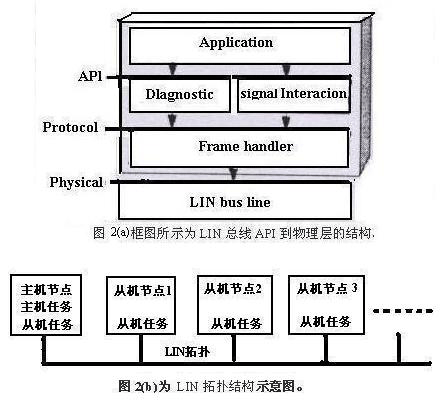 針對(duì)汽車應(yīng)用的LIN 1.0(本地互連網(wǎng)絡(luò))和LIN 2.0總線系統(tǒng),它的目標(biāo)是低成本應(yīng)用,除了TPMS外還有電動(dòng)門(mén)、電動(dòng)窗、側(cè)鏡、雨刮器、座椅安全帶報(bào)警、外部照明等。LIN總線的傳輸速度最大為 20kbps,而且它在單通道總線環(huán)路中最多能支持16個(gè)節(jié)點(diǎn),總線電纜的長(zhǎng)度最多可以擴(kuò)展到40米。LIN足一種基于通用SCI(UART)字節(jié)接口的單線串行通訊為協(xié)議。圖2(a)框圖所示為L(zhǎng)IN總線API到物理層的結(jié)構(gòu)。而LIN總線的主要特征為:—個(gè)主節(jié)點(diǎn)、多個(gè)從節(jié)點(diǎn)的概念,無(wú)需總線仲裁;低成本:基于普通UART/SCI接口硬件;自同步,在從節(jié)點(diǎn)中不用晶體振蕩器或陶瓷振蕩器時(shí)鐘;保證信號(hào)傳輸?shù)难舆t時(shí)間;低成本單線實(shí)現(xiàn)連接;速度高達(dá) 20kbps;基于應(yīng)用交互作用的信號(hào);LIN總線的驅(qū)動(dòng)/接收器規(guī)范遵從IS09141標(biāo)準(zhǔn)。