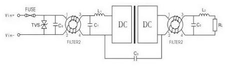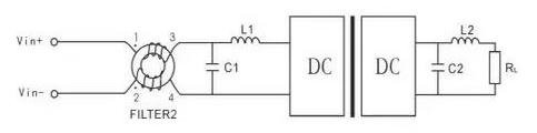 在實(shí)際應(yīng)用中,電路會(huì)產(chǎn)生共模干擾,可以在模塊的輸入端采用共模扼流圈進(jìn)行抑制。下面是DCDC電源模塊采用共模扼流圈的電路圖,如下圖所示: