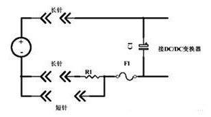 該方法缺陷是插入的速度不能控制,如插入速度過快,電容C1還沒充滿電時(shí),短針就已經(jīng)接觸,沖擊電流的限制效果就不好。也可用熱敏電阻法來限制沖擊電流,但由于DC/DC電源的輸入電壓較低,輸入電流較大,在熱敏電阻上的功耗也較大,一般不用這種方法。