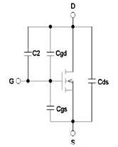 帶外接電容C2的N型MOS管極間電容等效電路MOS管的極間電容柵漏電容Cgd、柵源電容Cgs、漏源電容Cds可以由公式確定,公式中MOS管的反饋電容Crss,輸入電容Ciss和輸出電容Coss的數(shù)值在MOS管的產(chǎn)品技術(shù)手冊上可以查到。公式如下:
