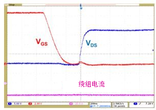 上圖所示為由于電路寄生效應(yīng)引起的具有分立MOSFET的相位節(jié)點電壓振鈴,使用模塊電源時,具有連接兩個MOSFET的開關(guān)節(jié)點夾將高側(cè)和低側(cè)MOSFET之間的寄生電感保持在絕對最小值。在同一封裝中使用低側(cè)和高側(cè)FET可最大限度地減少PCB寄生,并減少相節(jié)點電壓振鈴。使用這些模塊電源有助于確保平滑的驅(qū)動MOSFET開關(guān),即使在電流高達(dá)50A時也不會出現(xiàn)電壓過沖,如下圖所示。