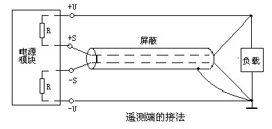如上圖所示:目前多數(shù)低壓大電流輸出的電源模塊都有遙測端+S 和-S ,使電源內(nèi)部反饋控制電路通過檢測線和負(fù)載相連接,補(bǔ)償大電流線路壓降對負(fù)載效應(yīng)值的影響。圖中給出了遙測端和負(fù)載的連接方法,檢測線和輸出大電 流負(fù)載線分離,而遙測端直接檢測負(fù)載兩端電壓。這種方法是利用提高輸出端電壓來維持負(fù)載兩端的電壓值,其中遙測端與負(fù)載的連線應(yīng)盡可能屏蔽,避免電磁干擾影響電源內(nèi)部的反饋控制電路。一般在遙測端與電源輸出端之間有一只電阻,假如遙測端由于粗心沒有連接到負(fù)載端上,可防止輸出端電壓上升過高。當(dāng)遙測端不用,應(yīng)分別和電源正負(fù)端短接。