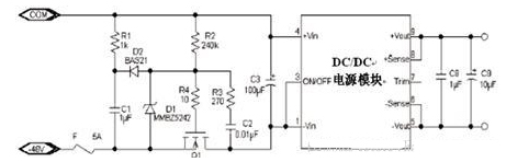 該方法缺陷是插入的速度不能控制,如插入速度過快,電容C1還沒充滿電時(shí),短針就已經(jīng)接觸,沖擊電流的限制效果就不好。也可用熱敏電阻法來限制沖擊電流,但由于DC/DC電源的輸入電壓較低,輸入電流較大,在熱敏電阻上的功耗也較大,一般不用這種方法。